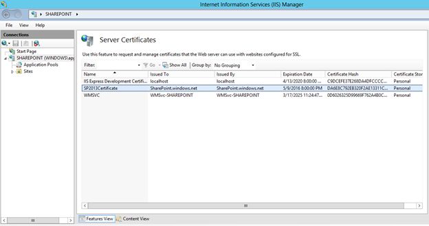 Note: The signing process is required so that the SharePoint server can trust the second IIS Server that will host the PHA application. In a real-world scenario, the certificate exporting and signing should be done with third-party vendors.