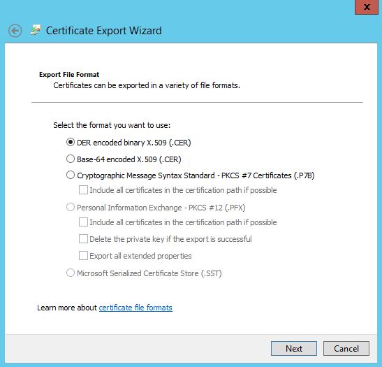 From the Details tab, click on Copy to File.. The options are as shown in the preceding screenshot.