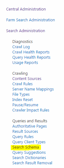 Now the search system should have identified our new columns, but they are just crawled properties. We need to convert them to Refiners.