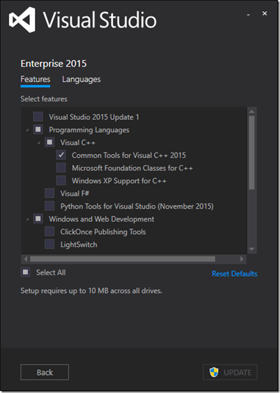 Update and noticed that check box provided for VS 2015 Update 1 was still unchecked in the newly opened window as shown below:
