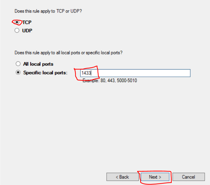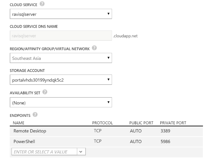 Step 7: Click enter or select a value and select MSSQL, a public port and private port (Endpoints) will be created for SQL Server.