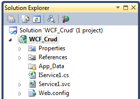 Two files, IService1.cs and Service1.svc, will be added under the project in the Solution Explorer as shown in the following image.
