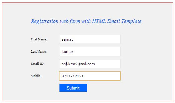Step 5: Now in the design “Registration.aspx“ design the web page with the following source code. I have also implemented the JavaScript validations on the First Name, Last Name, Email ID and the Mobile fields.