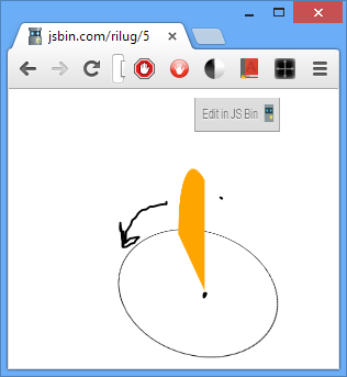 With the preceding CSS, the quarter circle will rotate by fixing the origin at a distance of 200px away from the left edge of the box.
