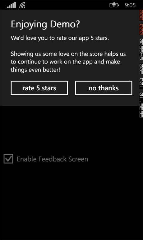 This article explains how to control the message box screens of the Rate My App Component. Both screens, namely the review and feedback screens, are very useful and generally used in the same combo. But in some situations we may want to split these two screens. This article explains this.
