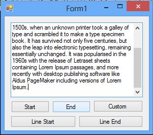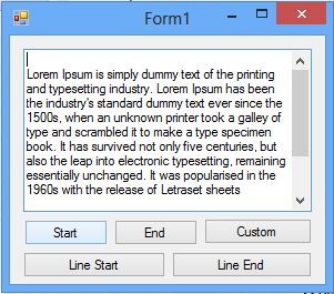 In this article we will learn how to position the caret programmatically in a text box. It may be useful in various situations. In this article we will cover the five positions.
