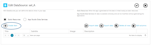 A Collection Data Source is a Data Source that allows you to store your own data. The data is stored in Tables. This Data Source offers full support for table schema modifications. In a table, a column represents the various fields of your data structures. These column values can be used inside the app using data bindings. The fields of data can be anything related to your application or problem, for example it can be a phone number, address, name, description, image and so on.