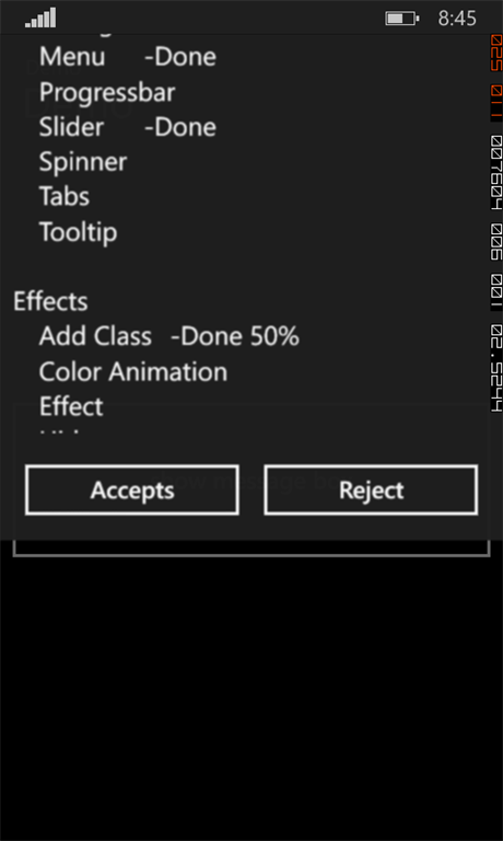 Custom Message Box is a control provided in the WP8 toolkit for customizing the interface and content of the message box. It enables you to add various UI elements to the message box that is not possible in the default message box. In this demo I'm placing a scroll viewer inside the message box. This can be useful for showing readme files, about, and other long info.