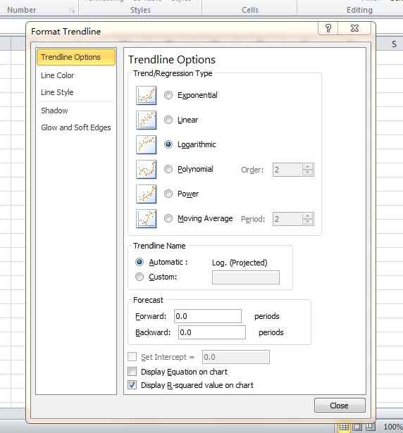Screenshot: (R2=0.9688, which means the trendline is very fit to the data.)