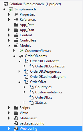 After adding the Entity Data Model here is the complete folder view.