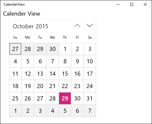 CalendarView represents a control that enables a user to select a date by using a visual calendar display.
