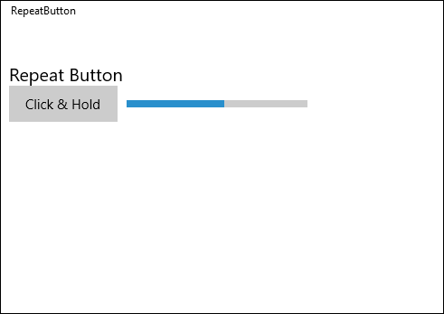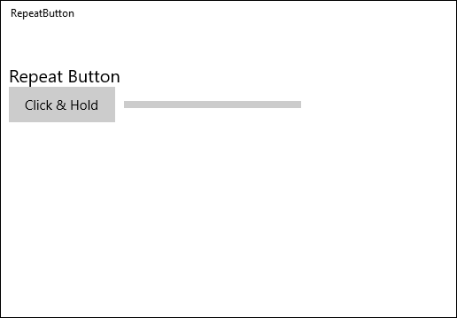 - <RepeatButton Name="myRepeatButton" Delay="500" Interval="100" Content="Click & Hold" Height="40" Width="120" Click="myRepeatButton_Click"></RepeatButton>