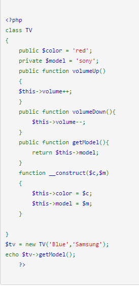 Note: $this refers to a particular object in class. Here the particular object is TV.