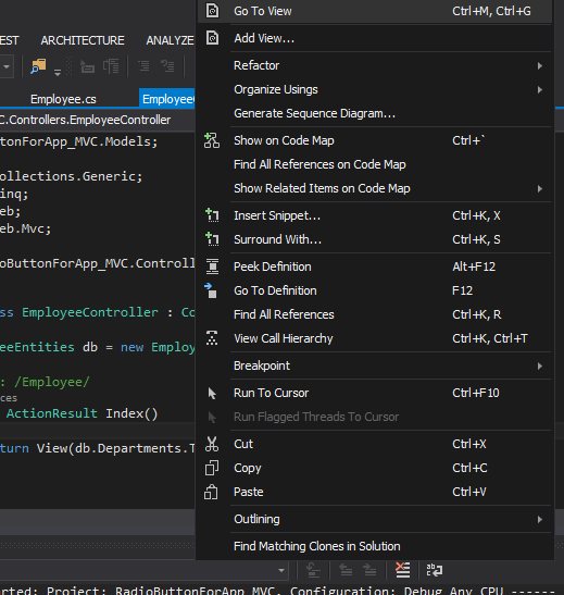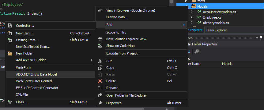 Add an Employee Controller as in Figures 3, 4 and 5.