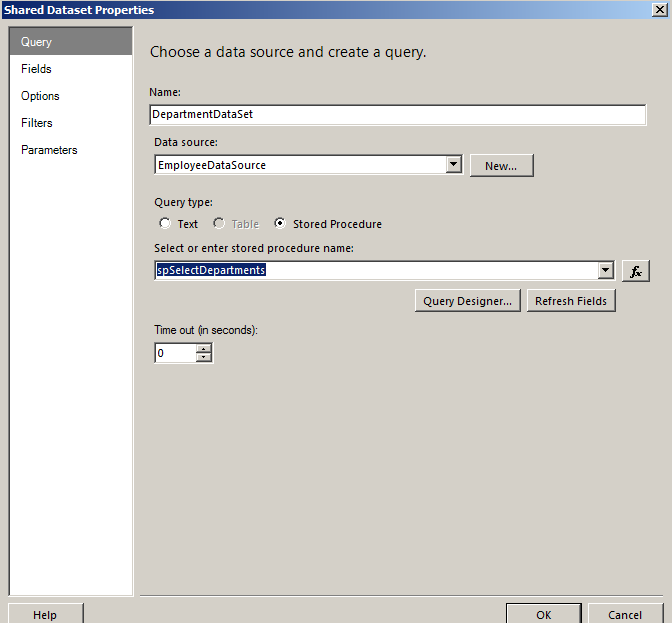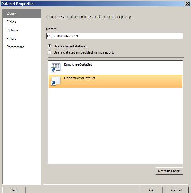 Choose a data source and create a query for departmentdataset as in Figure 7.