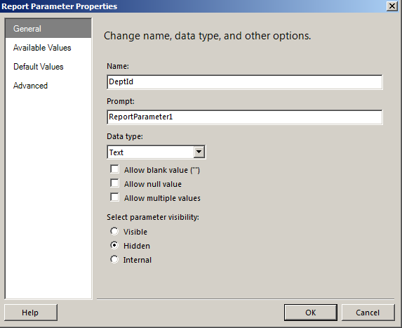 Create a parameter for the Department dataset as in Figure 11.