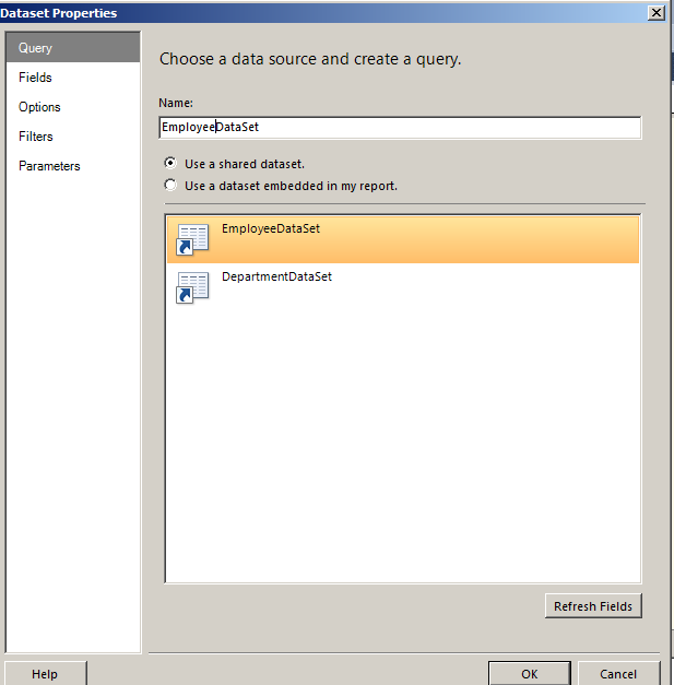 Choose a data source and create a query for employeedataset as in Figure 6.