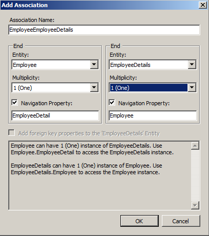 Add an association between Employee and EmployeeDetails as in the following: