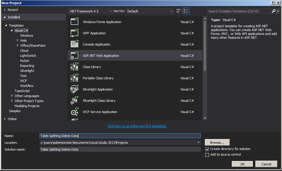 This article shows how to do table splitting and later we will also look at how to do a delete data operation.