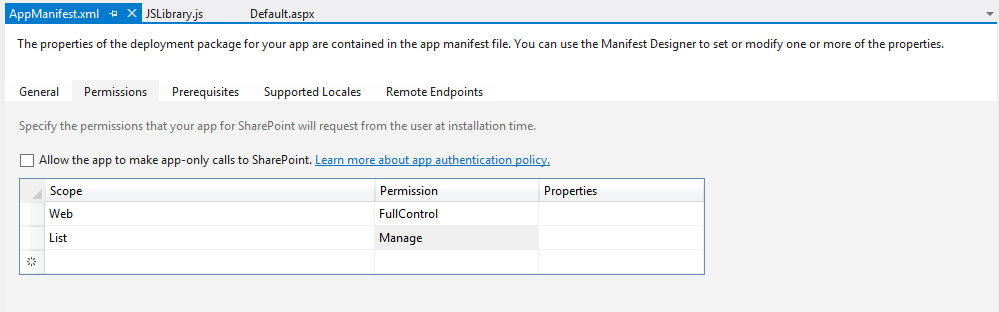 Step 5: We first need to set permission for App, so that we can communicate with site properly.