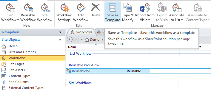 Step 3: Now save workflow as template using SPD 2013.