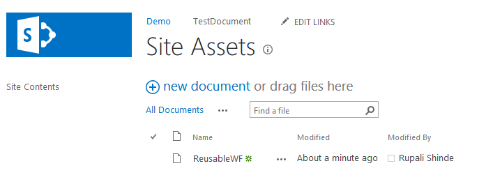 Step 4: Go to Site assets library under site content section, you will see our custom workflow as in the following,