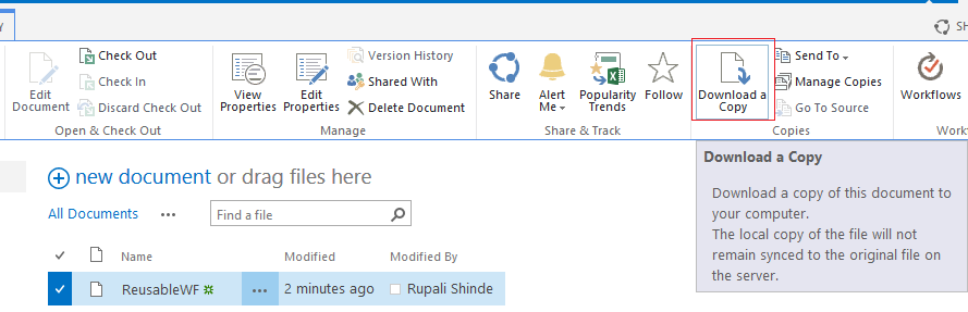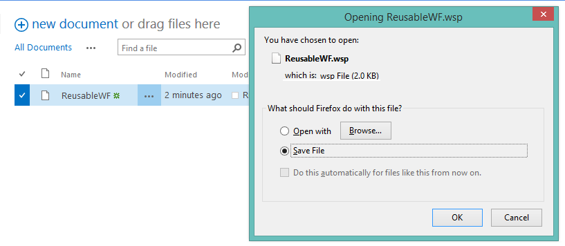Step 5: Download copy of workflow from site assets library as shown below. Template get saved in as .wsp format.