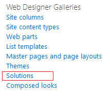 Step 2: Go to Site settings, then Solutions under “Web Designer Galleries”. Upload wsp into it and activate the feature.