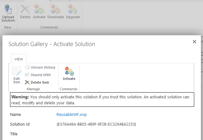Step 3: After solution is activated, it is listed under solution galleries section.