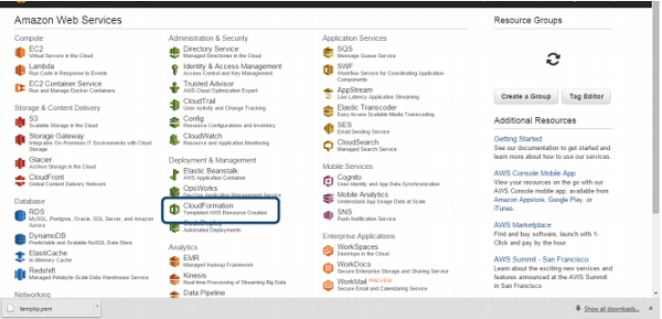 - Login to the AWS Console and select Amazon Cloud Formation service.