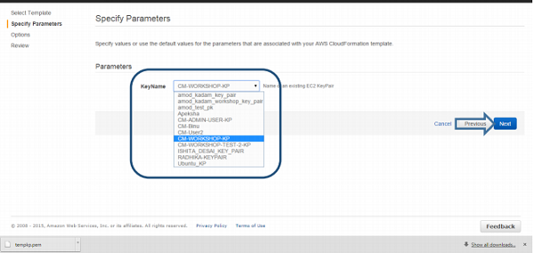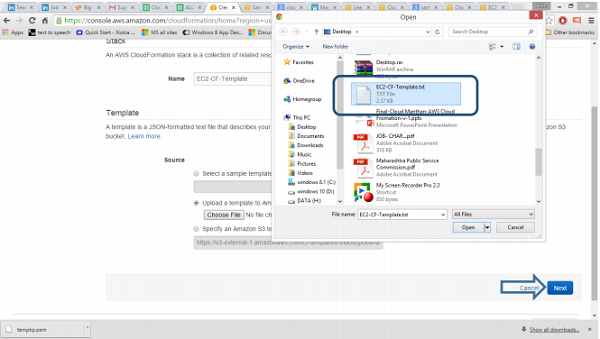 - Select Cloud Formation Template file, open it and click on the Next button.