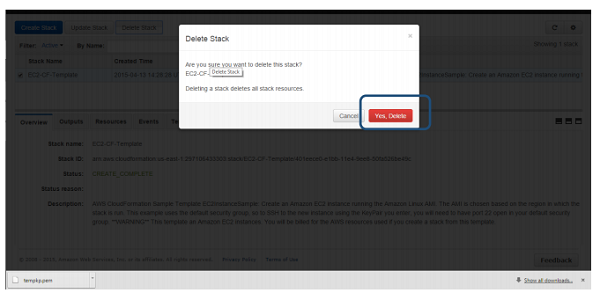 resources created by a specific stack, select Stack from the CloudFormation dashboard and select the Delete Stack button.