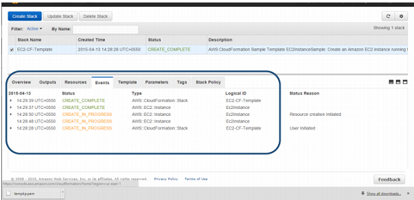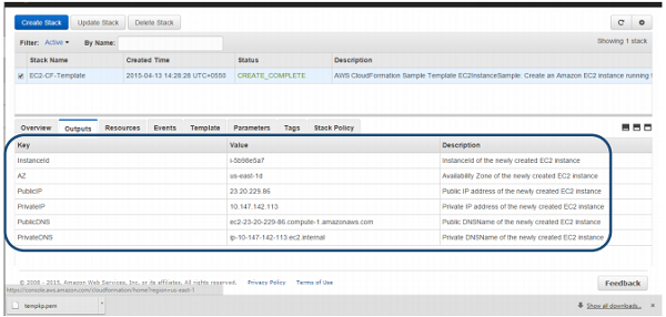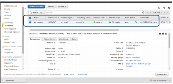 - Go to the EC2 dashboard and check the instance. A new instance is created by Cloud Formation and it's in a running state now. Now you can connect this instance using Putty or any other tool over the SSH – 22 port. You can also stop and start an instance as needed.