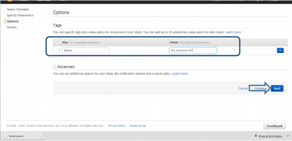 - You can add common TAGs to all the resources that we will be created using AWS CloudFormation. Add a TAG Key & Value and click on "Next".