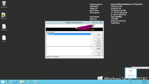 Save this host file and open the Apache Service Monitor and restart it.