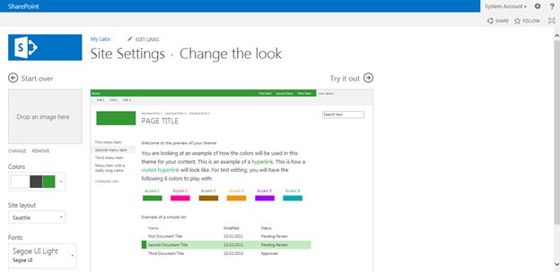 Once clicking the Site Settings, the screen shown in Figure 2 will open. In Site Settings, click Change the look.