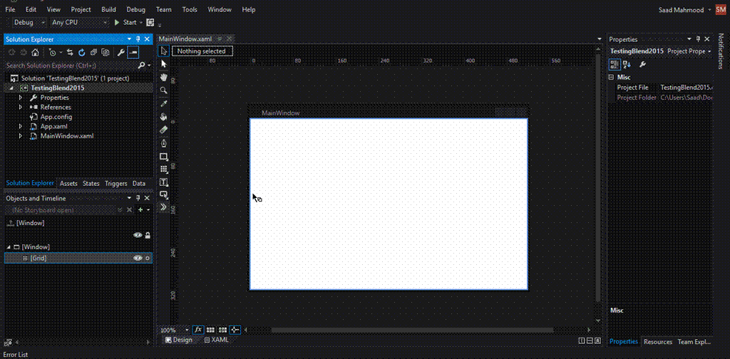 A quick demo of previous tabs and features in the new IDE of Blend for Visual Studio 2015