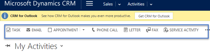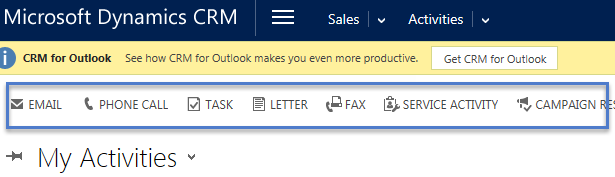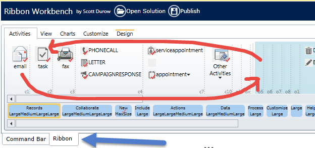 The requirement is to rearrange an existing command or ribbon button for an entity in CRM. Let's say we want to rearrange buttons on Activities, so for example currently some activities show buttons as in the following in the home grid view: