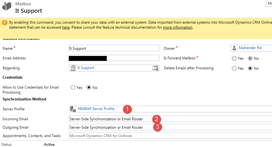 Finally, click on Approve Email and then click on the Test & Enable Mailbox button under mailbox command bar. If everything is well, after some time we should get successful email configuration test alerts for both incoming and outgoing under Alerts in mailbox.