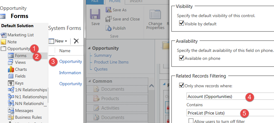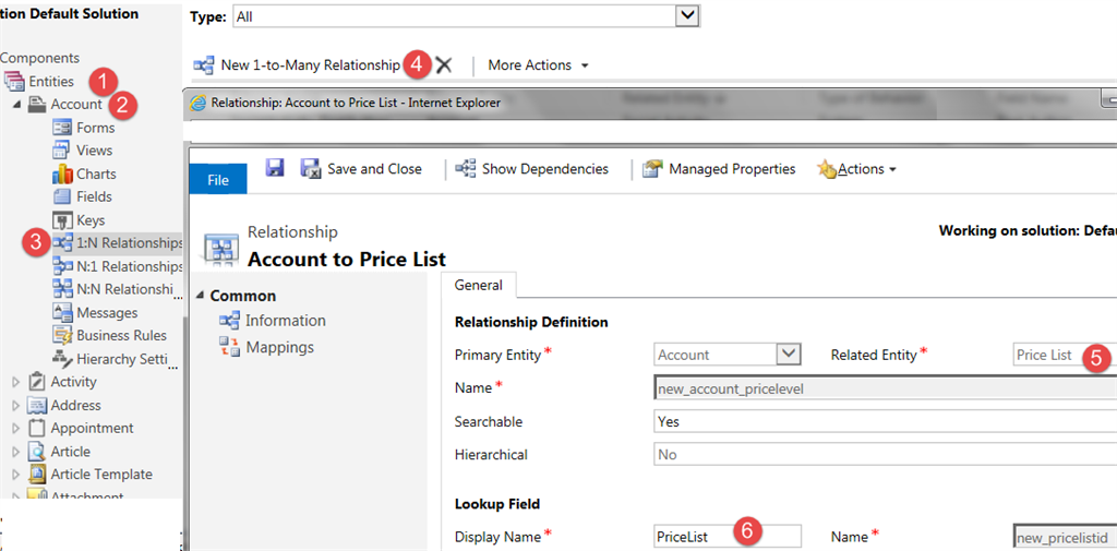 Now we have our price list associated with customer, so let's setup dependent lookup field on opportunity entity to show only price list which is related to account selected in opportunity. Using the following step to configure dependent lookup field: