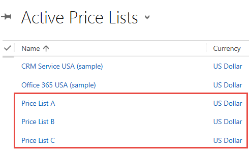 We have created three price list and we are going to associate two price list with account. You can refer this KB how to create price list in CRM.