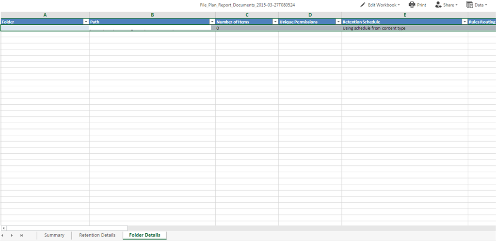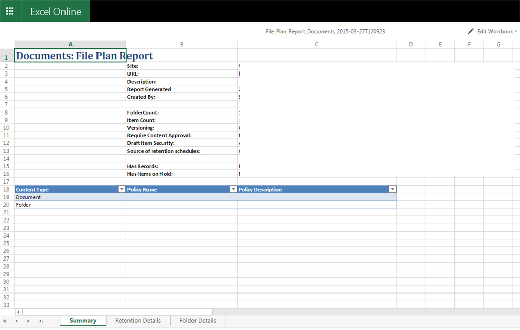 - The generated report will be divided into Summary, Retention Details and Folder Details.