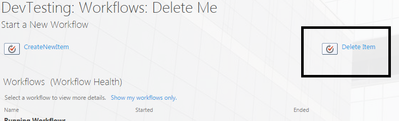 The following screen will be visible. Click Delete Item Workflow. It will bring you back to the list without that item you had selected. In this article we saw how to delete an item in SharePoint 2013 and Office 365 using Nintex Workflows, we will see new articles on the actions of Nintex Workflows in other parts of the article. Till then, keep learning.