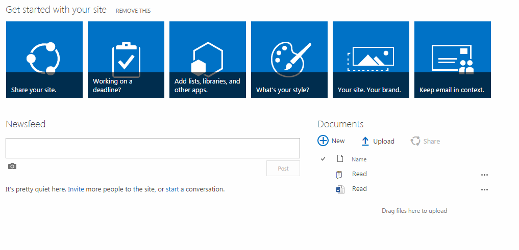 Here's an article on Newsfeed in SharePoint 2013 and Office 365. An add-on to provide us a platform to use our addiction to socialism.Newsfeeds are very important in our office work culture too since it helps us to socialize with all our colleagues, share our thoughts, share new technologies and share our knowledge.Newsfeed is a platform you can use for the company's announcements or other teams such as HR and Marketing can share valuable news and other users can like that news or drop in their comments.Let's see how you can do it.When you create a new site using a team site template in SharePoint 2013 and Office 365, you will see the following Newsfeed added by default on the home site of your site.Even if you have deleted it, it is available as a web part on the site. Let's use it now.The preceding is your default newsfeed that is empty. You can click on Invite and can share the newsfeed with more people as we can see from the screen below.You can assign them with various permission levels such as an owner can edit and view access to them.Let's start with Newsfeed. As a user I wrote Hi.