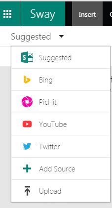 You need not worry about uploading stuff or making a separate database for it. Sway is seamlessly integrated with OneDrive, your devices, social networks and the web so you can drag and drop your content right onto your canvas.