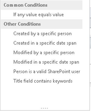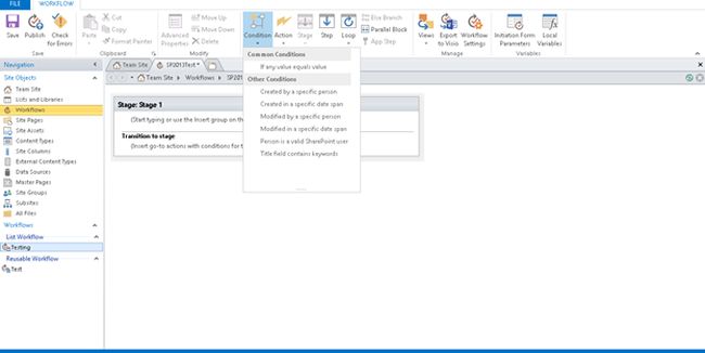 Then in the following we can see the various conditions that can be applied to our Designer Workflows.