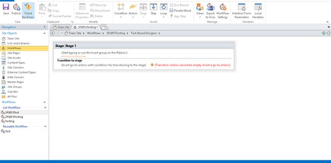 We can see a similar staging approach as the 2010 designer but has a new option as platform type where you can use 2010 as well as a 2013 designer platform to build your workflow.