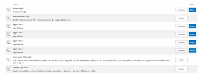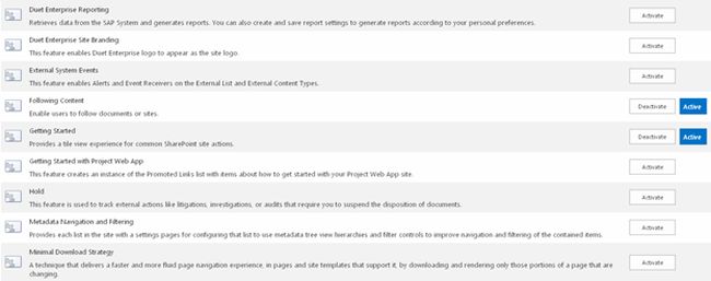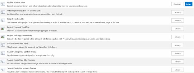 Manage Site featuresThe first link is Manage Site features, since we can see all the site features in the following screen shots.