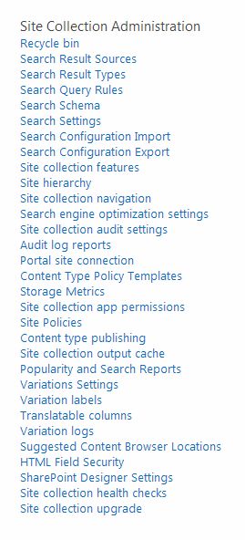 Site Collection FeaturesThe following are the Site Collection features, It contains the default features and custom features (created by developers).