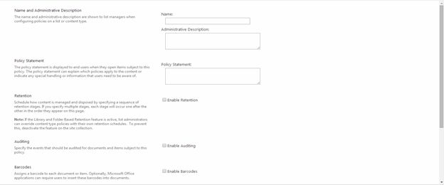 You can create the policy using the form below. You can add a Name and Administrative Description then we have a Policy Statement. You can have the Retention policy where you can schedule the content by specifying the sequence at each stage.